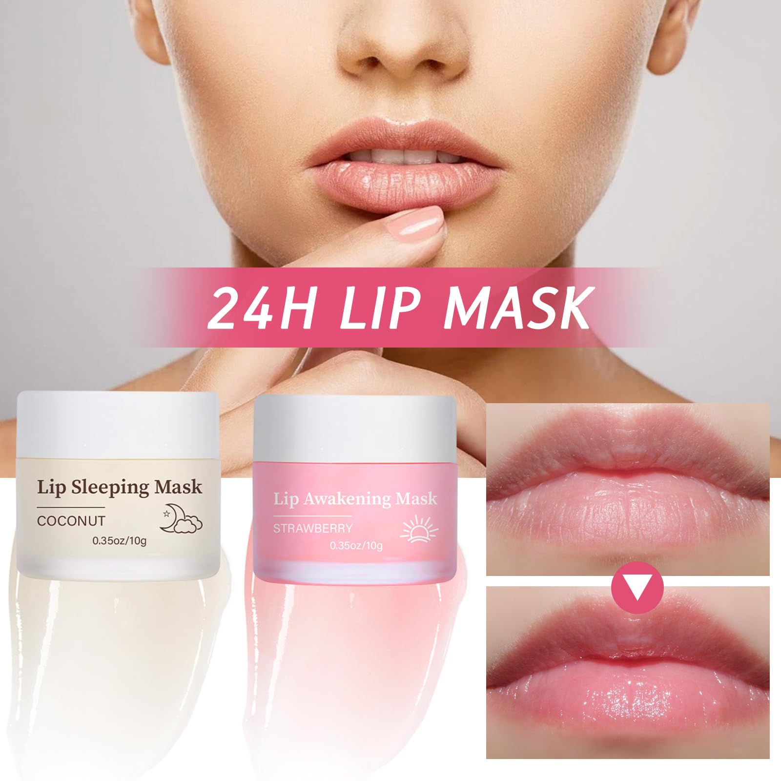 • 🌞 Day & Night Lip Care Duo: Includes a refreshing strawberry day mask and a nourishing coconut night mask—your around-the-clock solution for smooth, soft, and healthy-looking lips.
