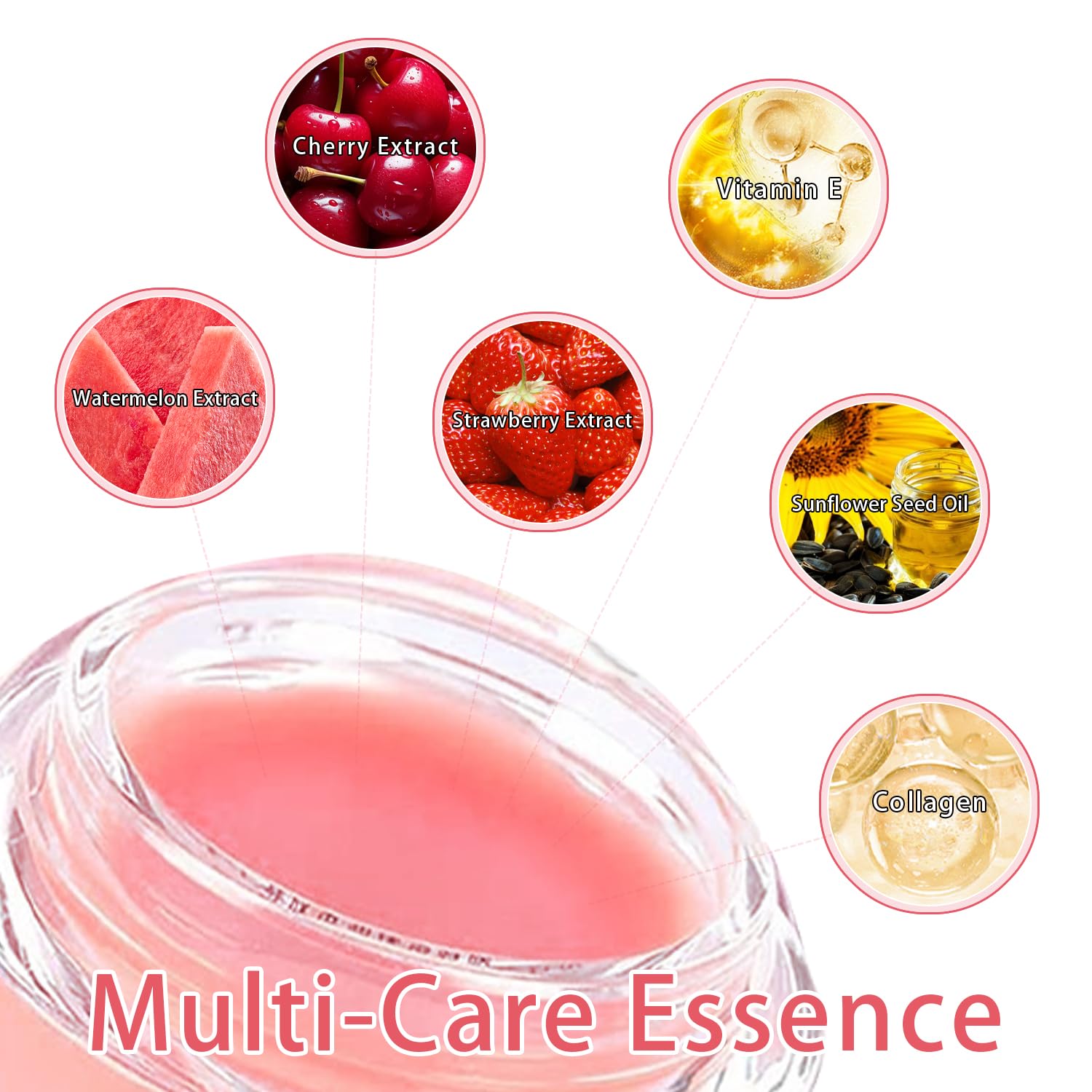 đăSafe IngredientsăRich in natural Watermelon, Cherry and strawberry extract, vitamin E and other essence formula, honey lip balm is rich in moisturizing factors, which is gentle, safe and easily soften the cutin, moisturize the lip skin, and give you health and beauty Lips.