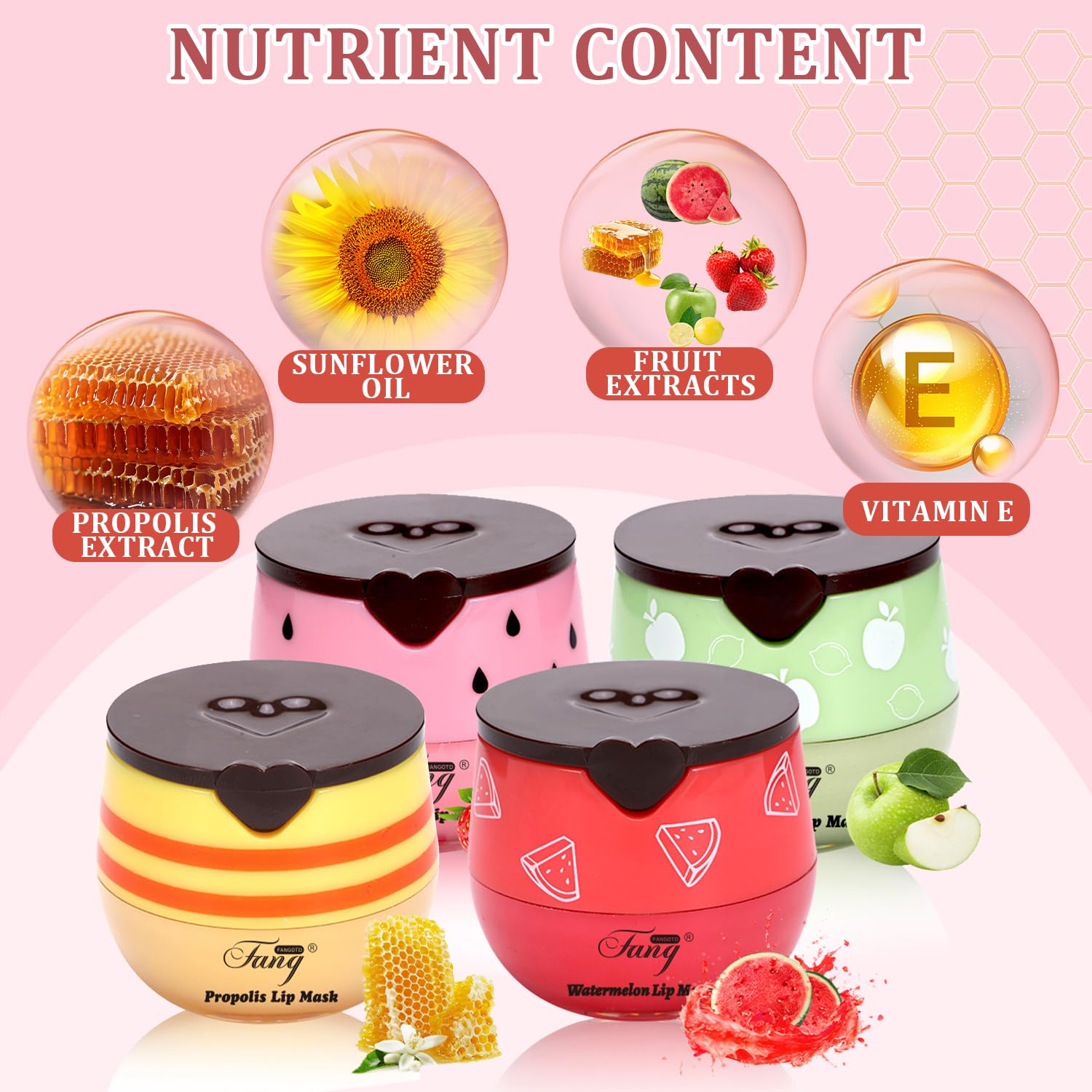 Fruity Lip Mask: The smooth texture is combined with the attractive fruity aroma to caress the lips delicately, take care of your lips all the time, fuller, softer and smoother