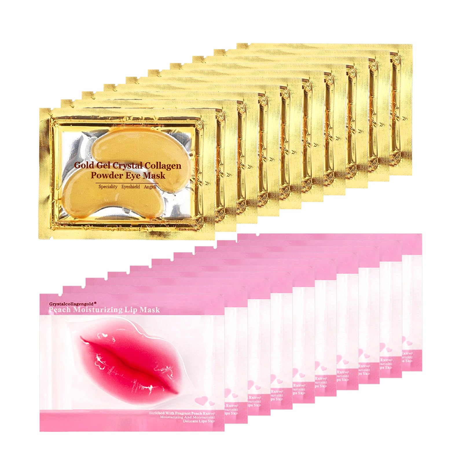 40 Pairs 24K Gold Eye Masks & Lip Masks, Crystal Collagen Under Eye Patches for Puffy Eye, Moisturizing Skin Care Lip Eyes Patches for Dark Circles, Wrinkles and Fine Lines (gold and peach red)