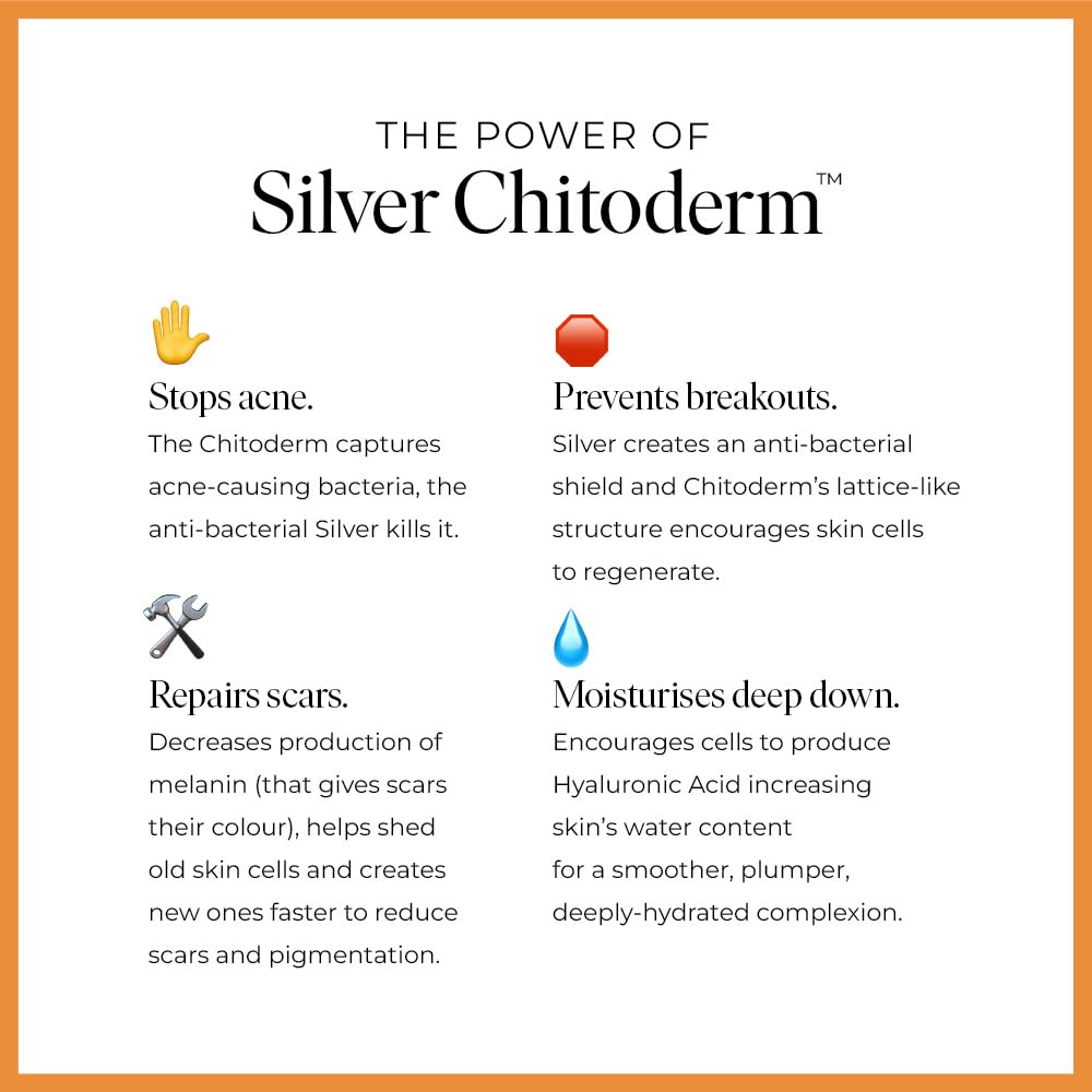 ✨ Anti Blemish and Scar Repair - Our unique ingredient silver chitoderm naturally acts as effective spot and acne treatment and fades scars (old & new) and heals skin.