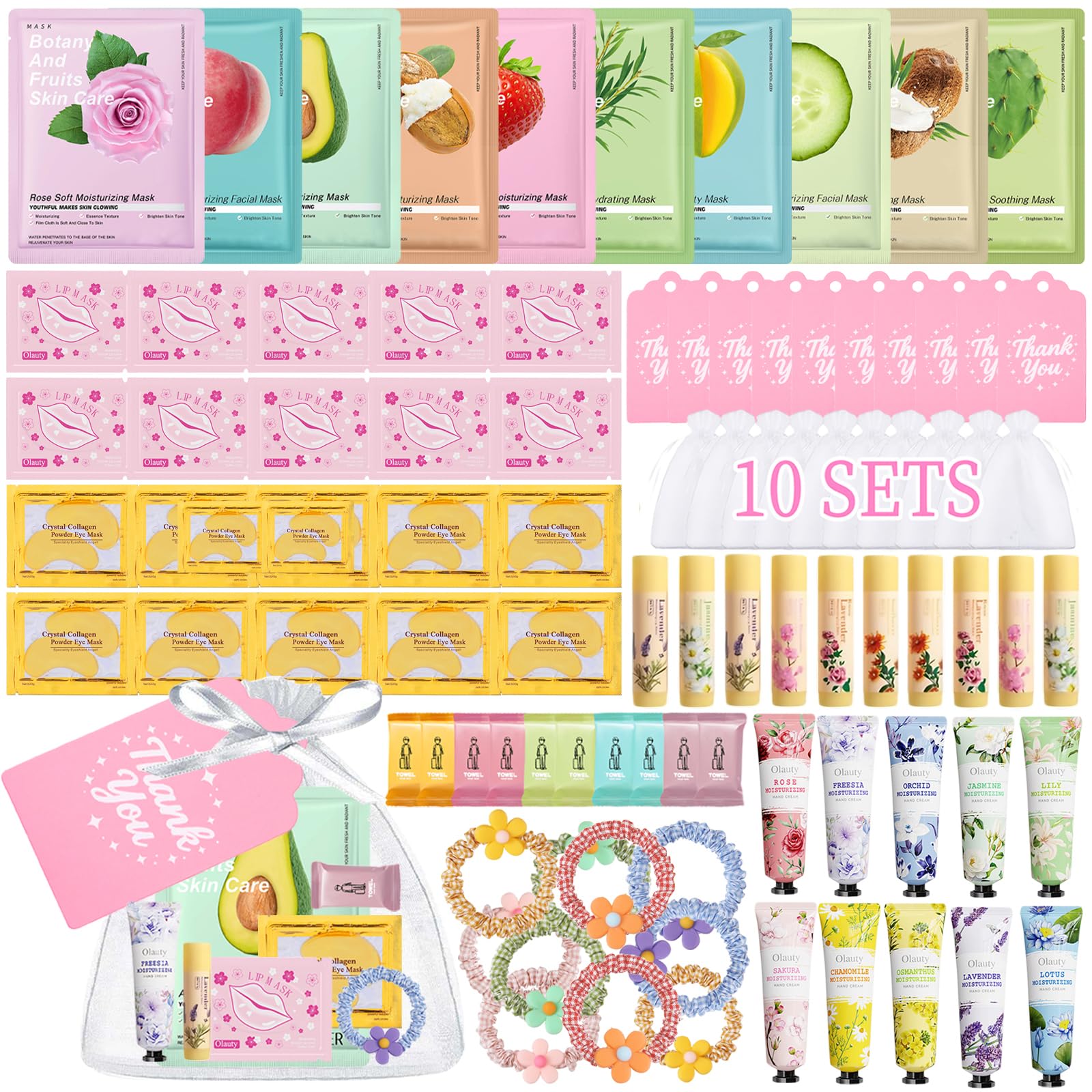 Thoughtful Beauty Gift Set - Designed for girls' and women's pajama parties and spa gatherings, it contains 90 carefully selected spa products to meet all needs. Ten gift sets come in chiffon gift bags, perfect for sharing with each spa-going friend—a thoughtful romantic gesture and the ideal individual party gift for women's spa gatherings or girls' pajama parties.