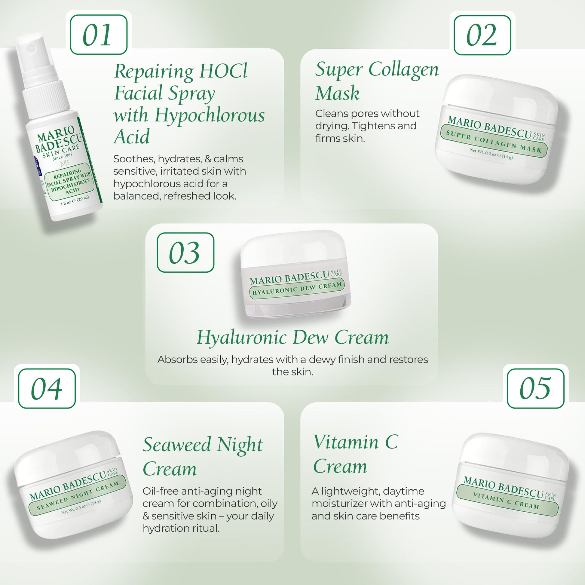 A Little Bit of Mario 10-Piece Skincare Kit – Vitamin C Serum, Glycolic Acid Toner, Hyaluronic Dew Cream, Collagen Mask, HOCI Spray & Cleanser – Brightening, Anti-Aging & Hydration – Travel & Gift Set