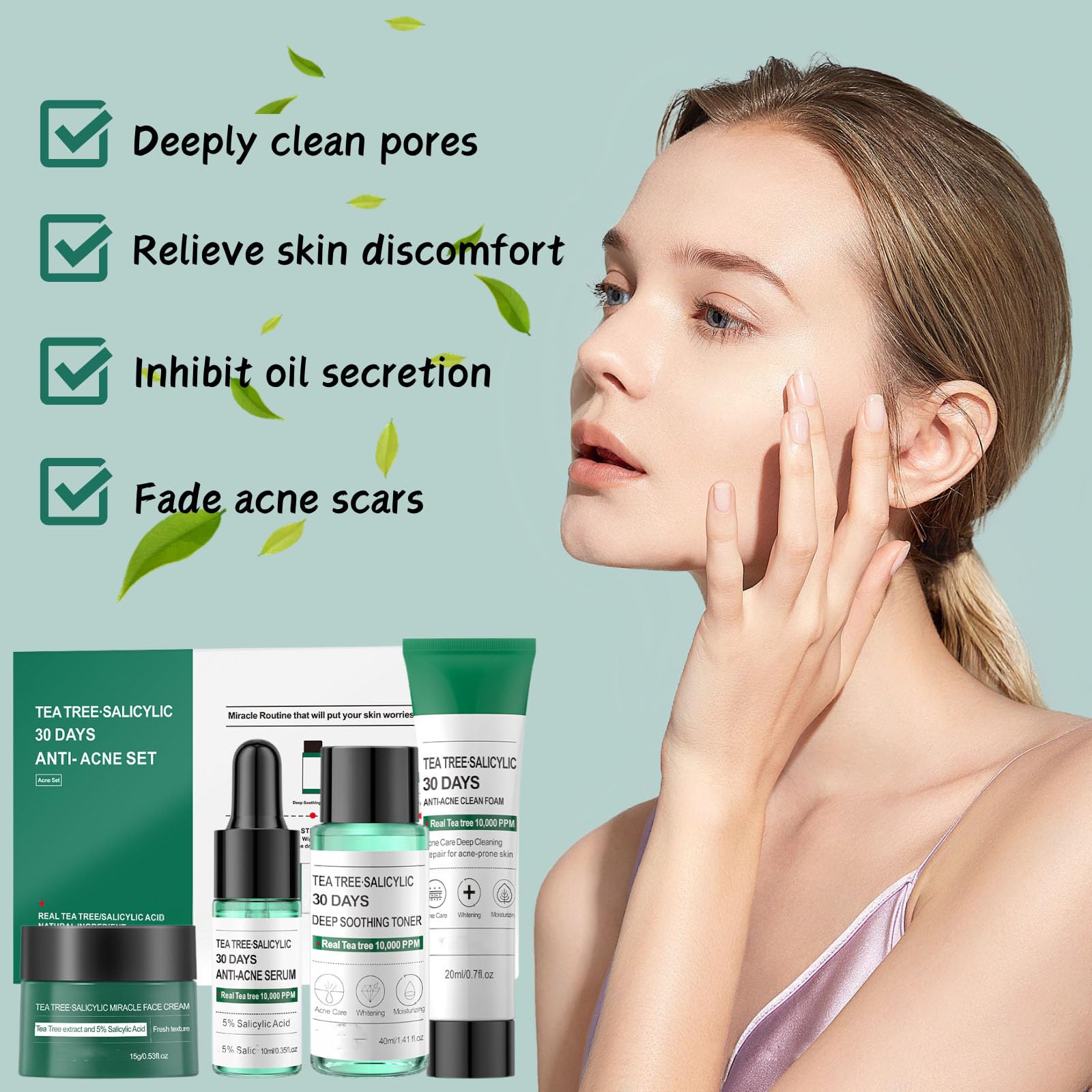 This acne set is also an effective acne scar treatment. The salicylic acid acne treatment skin care set promotes skin cell regeneration and collagen production, gradually reducing the visibility of post-acne marks.