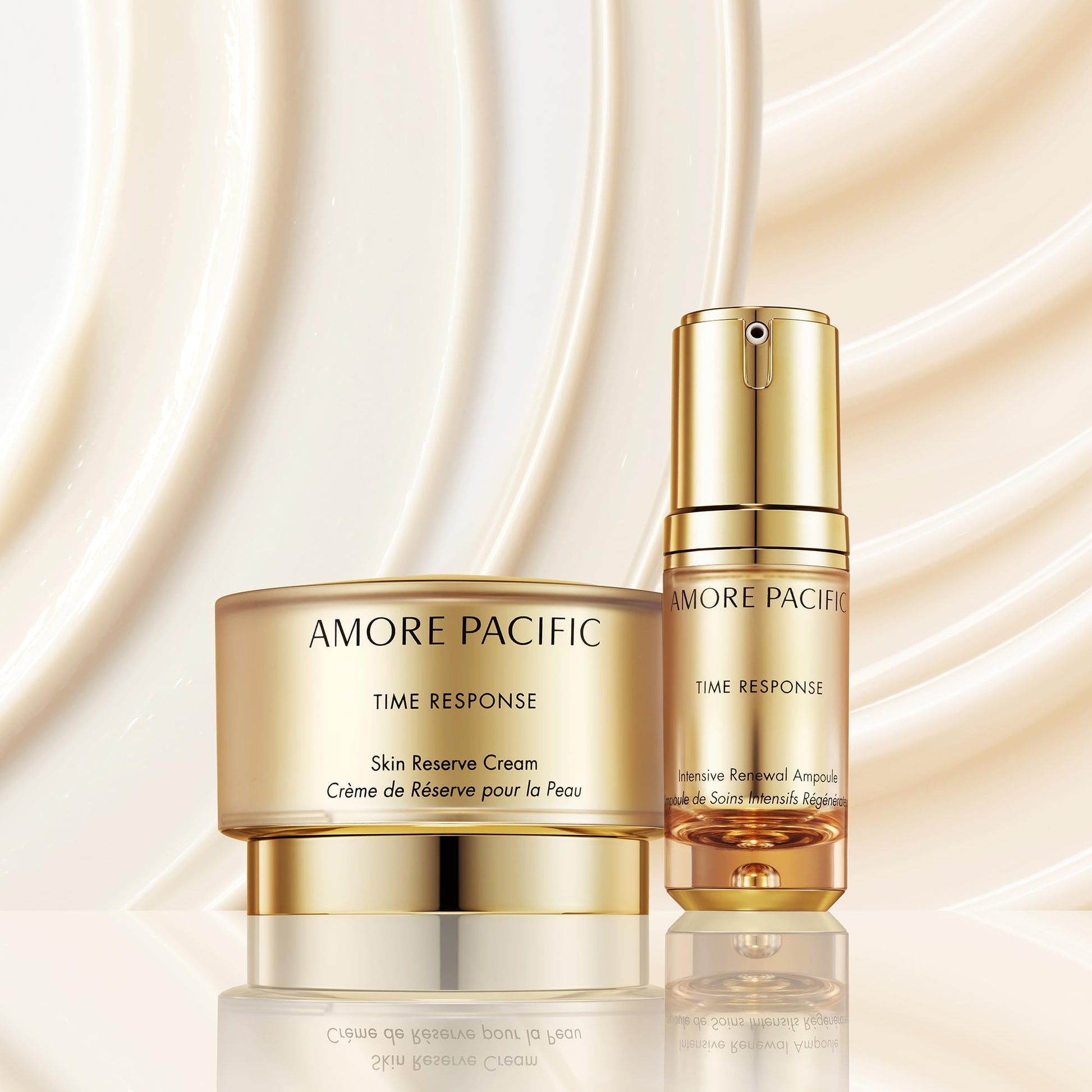 Details: This limited-edition set features the ‘TIME RESPONSE Intensive Renewal Ampoule’ and ‘TIME RESPONSE Skin Reserve Cream.’ Feel the power of AMORE PACIFIC’s unique anti-aging ingredient AbsoluTea, which helps keep your skin looking visibly radiant and timelessly youthful. HOW TO USE: Use TIME RESPONSE Intensive Renewal Ampoule in place of serum step AM and PM. Each ampoule should be used in 7 days. Apply one pump on the forehead and one pump on the cheeks, using a circular massaging motion. Then, scoop a dime-sized amount of TIME RESPONSE Skin Reserve Cream with enclosed spatula. Gently massage onto face, neck, and décolletage.