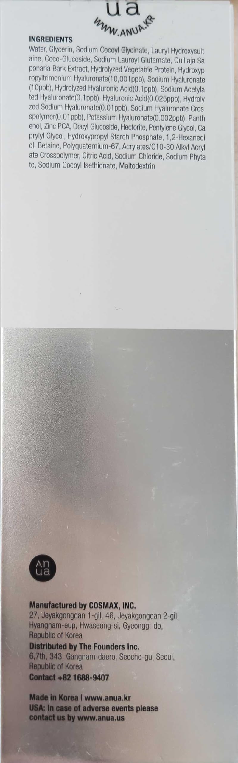 Anua Hydrating Gentle Foaming Cleanser, Hyaluronic Acid, Glycerin, Zinc, Panthenol, Korean Face Wash for Dry Skin, for Double Cleansing, Korean Skincare (150ml/5.07fl oz.)