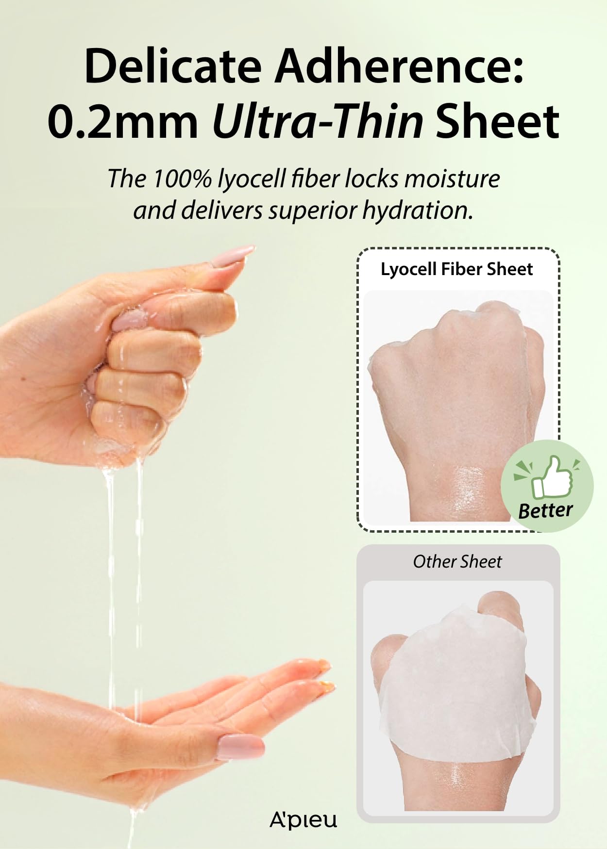 A'PIEU Daily Sheet Mask (Green Tea) - Moisturizing Korean Face Masks, 30-day supply, Lyocell fabric for comfort, Saturated with Green Tea Extract Essence