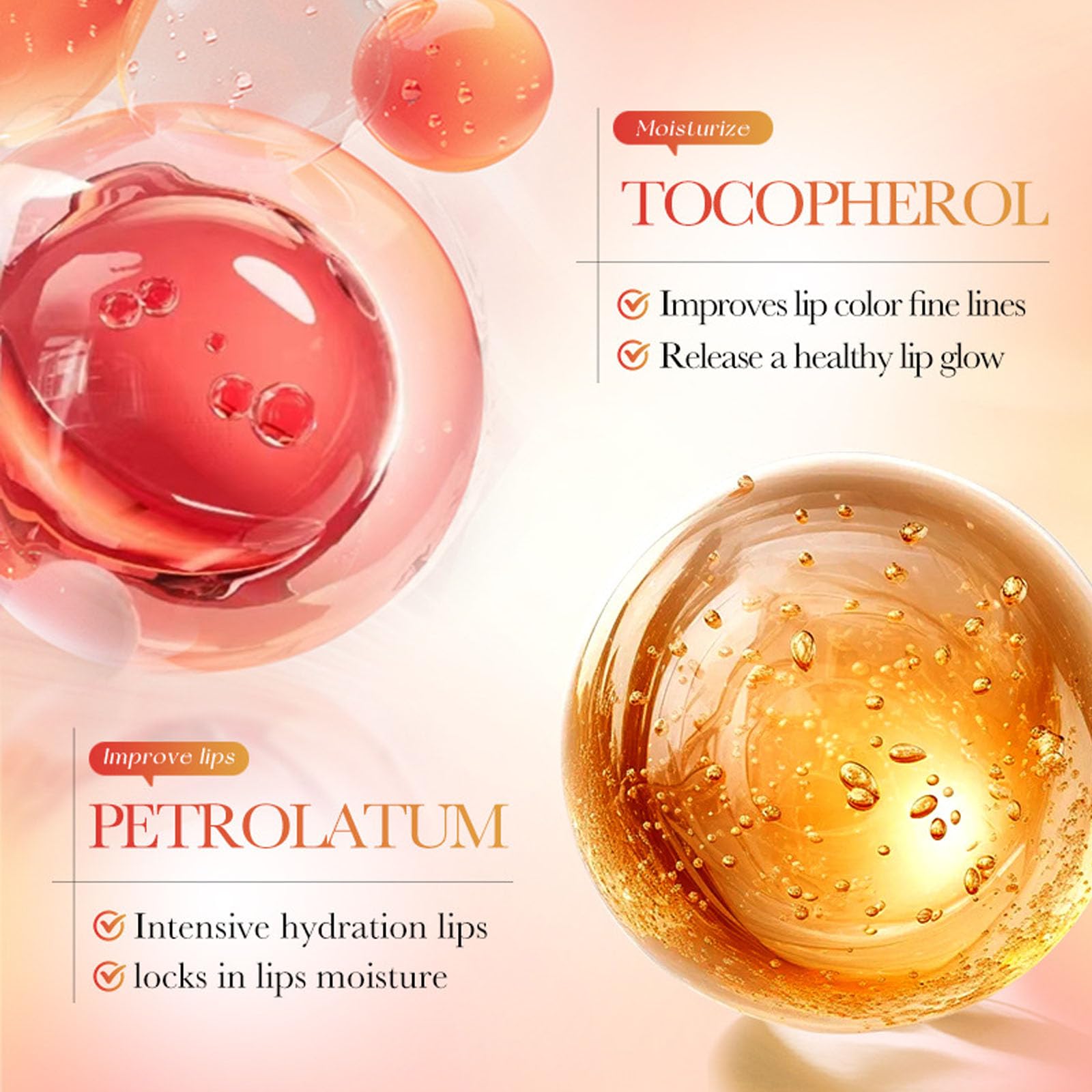 [Improve Lip Color]: Moisturizing lip mask gently metabolizes the old and dead keratin on the lips, brightening the lip color. After using the lip sleep mask, the lips become rosy and lustrous, saying goodbye to dull lips