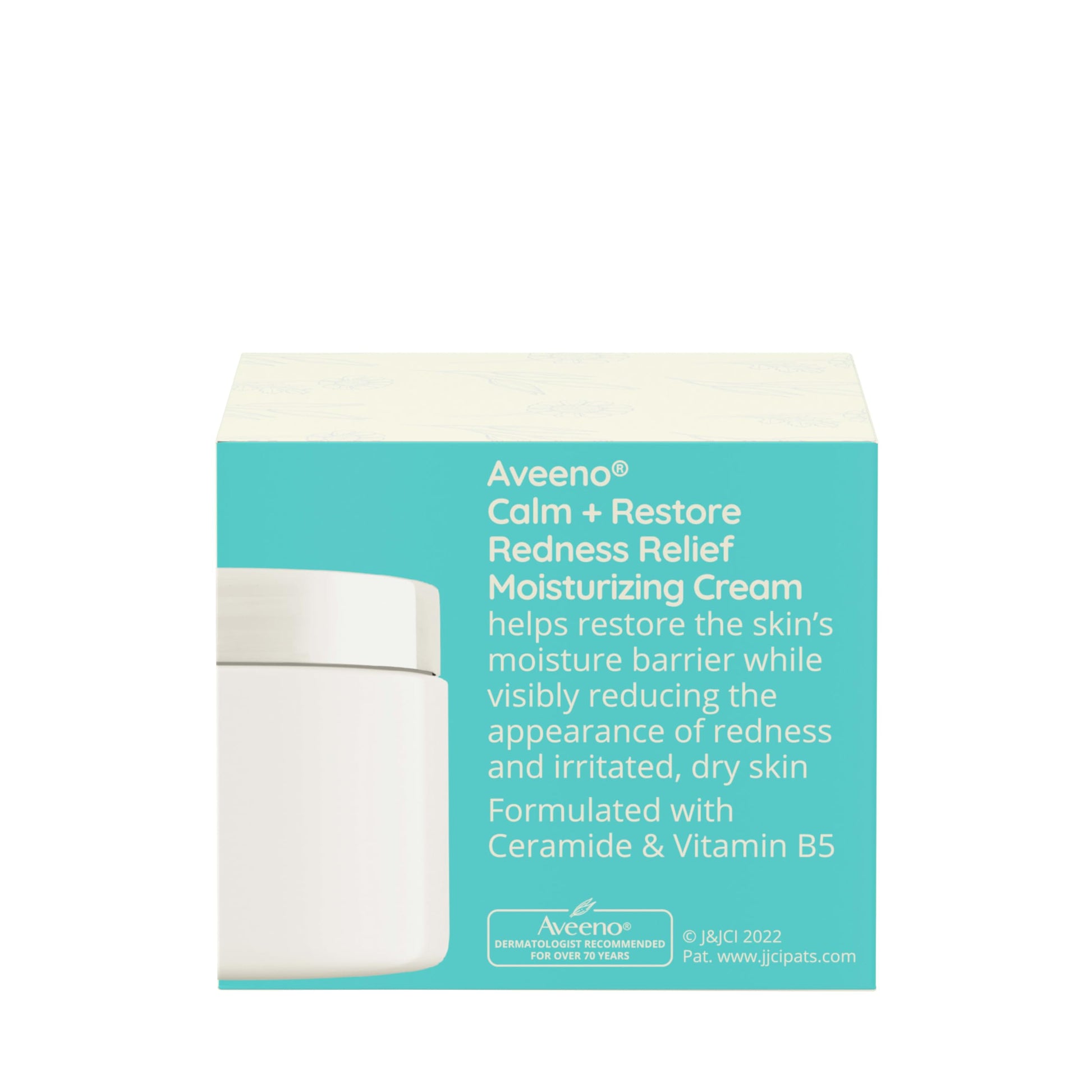 Everyday hydration: Aveeno Calm + Restore Redness Relief Moisturizing Face Cream helps restore the skin's moisture barrier while visibly reducing the appearance of redness & irritated, dry skin; the perfect addition to any daily skincare routine