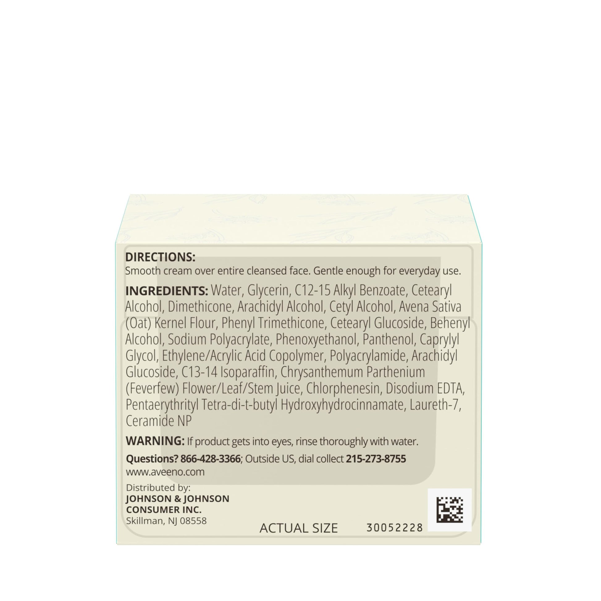 Details: Aveeno Calm + Restore Redness Relief Daily Facial Moisturizer Face Cream is a fragrance-free, oil-free, paraben-free, phthalate-free moisturizer designed to help visibly reduce the appearance of facial redness while delivering soothing hydration for sensitive, combination, dry, and redness-prone skin. A dermatologist recommended brand for over 70 years; Moisturizer face cream blends nourishing oat with calming feverfew to soothe irritated, dry skin. Contains ceramide & vitamin B5 helps restore skin’s moisture barrier while visibly reducing the appearance of redness. The non-comedogenic, lightweight formula absorbs quickly without a greasy residue, layers well under sunscreen & makeup, & won’t clog pores, making it an easy addition to your daily facial skin care products routine. The 1.7 oz jar provides everyday hydration and care; With regular use, this gentle daily facial moisturizer helps calm, comfort, & hydrate skin so it looks more even and feels balanced. Formula is free of fragrances, parabens, & phthalates & making it gentle enough for everyday use.