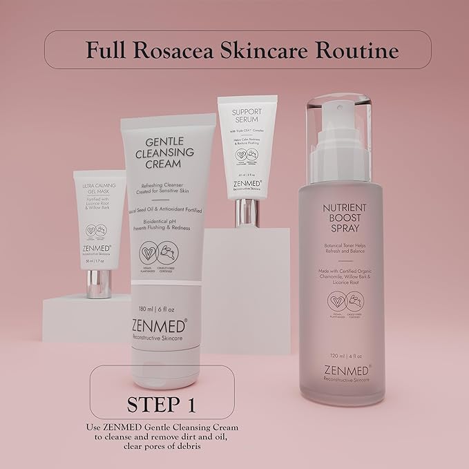 ZENMED Gentle Cleansing Cream - 6 oz. 100% Vegetarian Natural See Oil & Antioxidant Fortified Help Control Redness & Flushing pH 6.0 Soap-Free Will Not Over-Dry