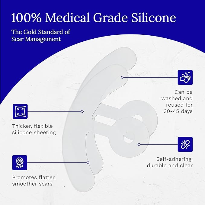 • Self-Adhering and Reusable: Silicone sheets are self-adhering and reusable, providing an easy-to-use scar care solution