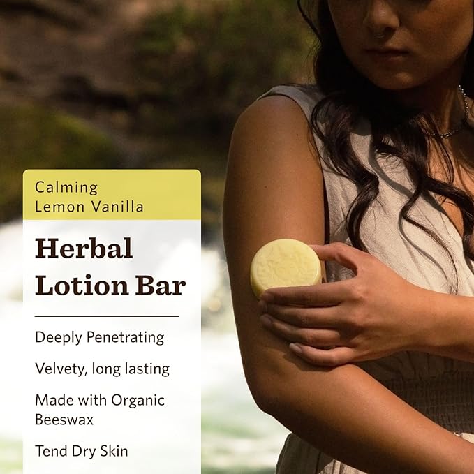 Moon Valley Organics Herbal Lotion Bar in Lemon Vanilla, Moon Melt Bar, Calendula and Comfrey, Beeswax, Heal and Restore Chapped Skin, Soothing