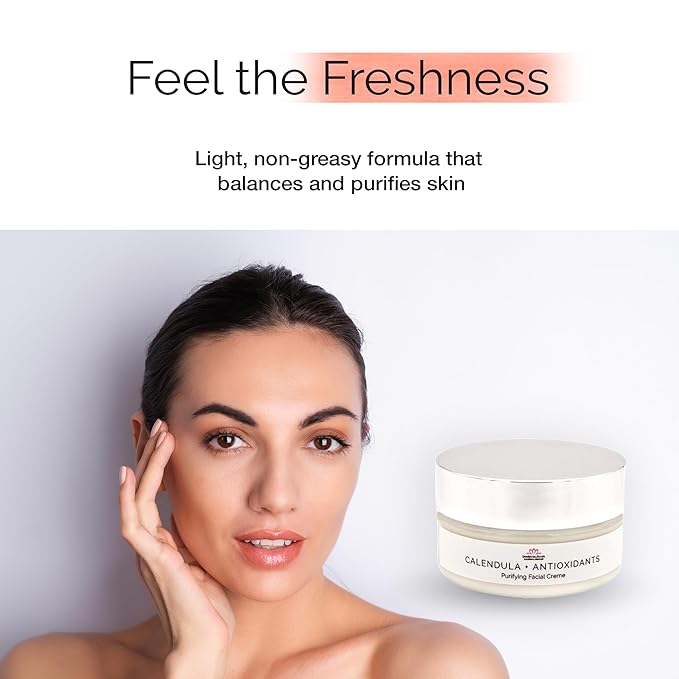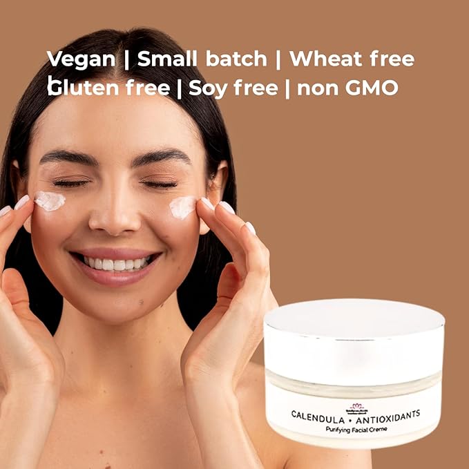 Calendula + Antioxidants Facial Crème – Natural Moisturizer with Vitamin C, Blueberry, Cranberry & Neem – Lightweight, Non-Comedogenic, Vegan – 2 oz