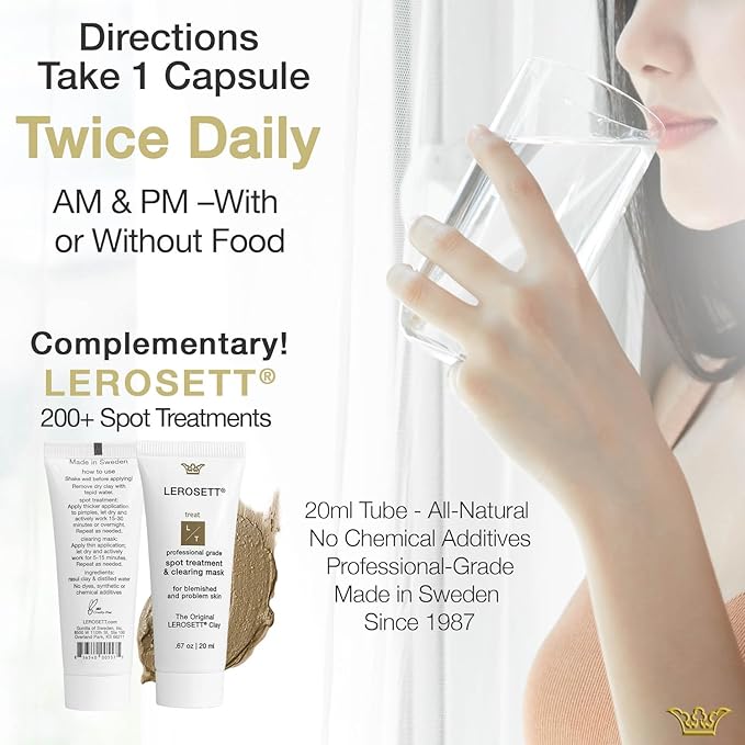 LEROSETT ClearPoint Anti Acne Pills, Natural Supplements for Hormonal & Cystic Acne Treatment for Oily Skin & Breakouts. 60 Caps