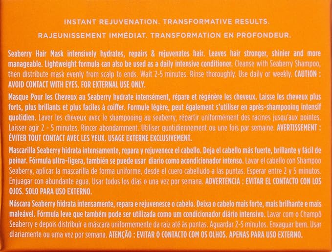 • EASY APPLICATION: Indulge in a hassle-free hair care routine with our simple-to-use product. After shampooing with our Seaberry shampoo, distribute product from scalp to ends. Wait 2-5 minutes and then rinse. Use daily or weekly. Enjoy the convenience of effortless application, and relish the exceptional results that await you.