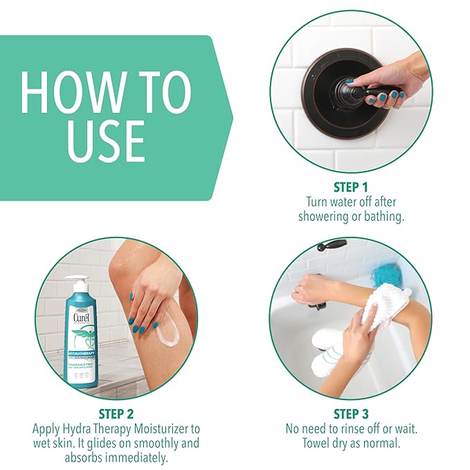 • SKIN HYDRATION WITH NO RESIDUE - Curel fast absorbing lotion allows for wet, in-shower application and immediate absorption so you can towel off and go