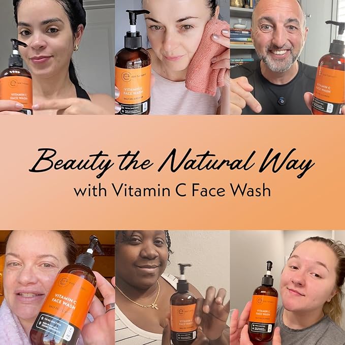 Vitamin C Cleanser Face Wash - HUGE 8 oz Gentle Facial Cleansing Gel for Uneven Skin Tone, Age Spots and Fine Lines - Natural Face Soap with Aloe Vera, Green Tea, Ginseng