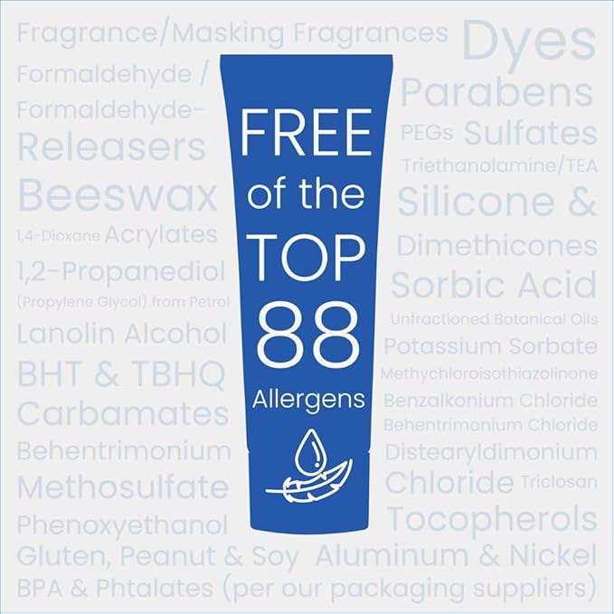 HYPOALLERGENIC, NON-TOXIC & SAFE FOR SENSITIVE SKIN: This dermatologist-developed formula is hypoallergenic, non-toxic, and free of 88 top allergens. It’s perfect for sensitive skin, ensuring a safe, soothing experience with every application.