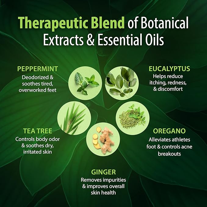 Perfect for athletes and active workers. A great natural defense against skin concerns and irritations commonly associated with an active lifestyle. Get rid of foot odor that is commonly associated with sport, fitness, or excessive sweating. An easy solution to all your skin-related discomforts!
