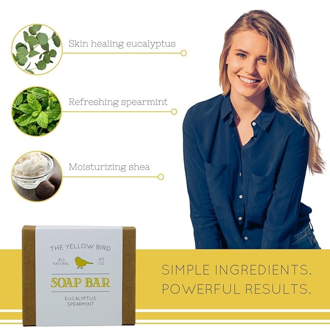 Yellow Bird Eucalyptus Spearmint Soap Bar – Natural & Organic Handmade Soap for Face & Body, Moisturizing Shea Butter Bar for Dry & Sensitive Skin, Refreshing Aromatherapy for Men & Women