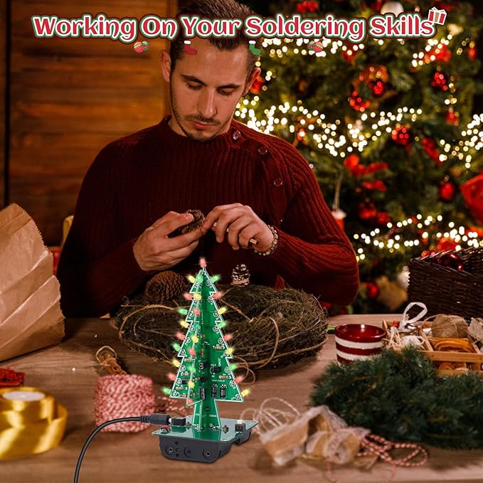 • WORK ON YOUR SOLDERING SKILLS: 3D Christmas tree DIY soldering kit is designed for people OVER 15 years old, aimed at improving users' electronics knowledge and soldering skills. It is perfect for After School Program and STEM education. You will need a set of soldering tools(not included in the product) such as electric iron, solder wire and so on, to finish the assemble and soldering process.