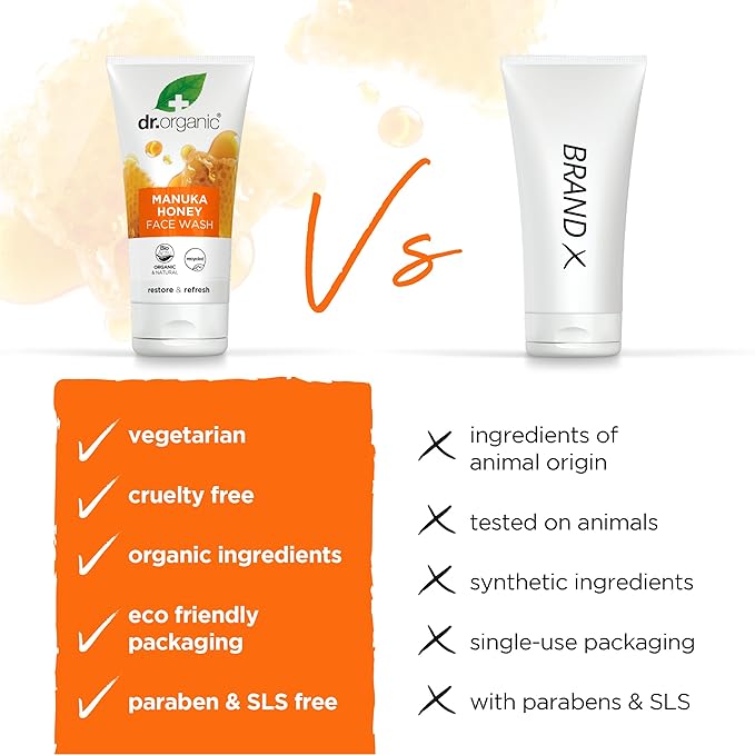 Dr. Organic Manuka Honey Face Wash | Gentle, Soothing, Cleansing, For Dry and Sensitive Skin, Certified Organic, Paraben & SLS-Free, Natural, 150 mL / 5 fl oz
