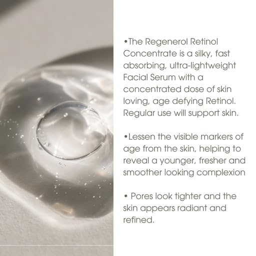 • REGENROL RETINOL CONCENTRATE - RAPID RESURFACING FACIAL TREATMENT SERUM, our silky, fast absorbing and ultra-lightweight facial serum with a concentrated dose of skin loving, age defying Retinol. Regular use will support skin and lessen the visible markers of age from the skin, helping to reveal a younger, fresher and smoother looking complexion. Pores look tighter and the skin appears radiant and refined