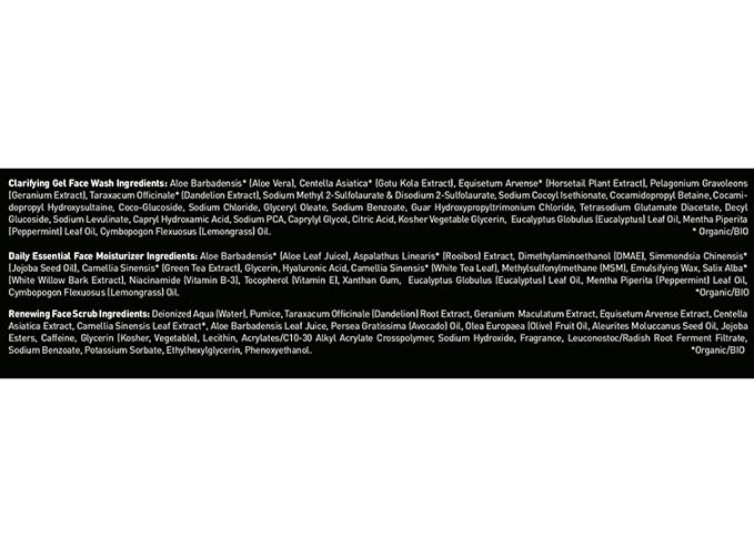 • How It Works: These three natural skin care products for men work together to cleanse the skin of oil, remove facial impurities & build up, and restore moisture and hydration.