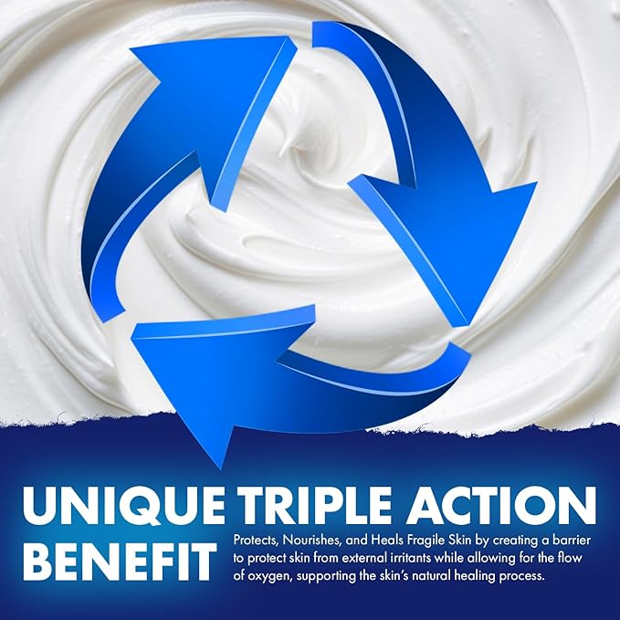 • UNIQUE TRIPLE ACTION BENEFIT : Protects, Nourishes and Heals Fragile Skin by creating a barrier to protect skin from external irritants while allowing for the flow of oxygen, supporting the skin’s natural healing process. As a nutrient rich formulation it also helps to nourish and heal Fragile Skin, supporting the skin’s barrier function.