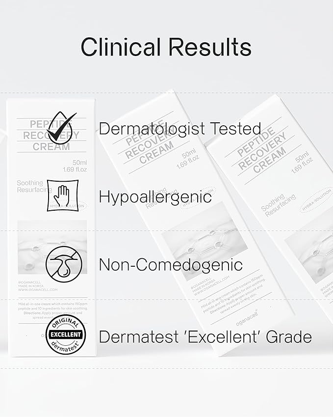 • OGANACELL PEPTIDE RECOVERY CREAM (50ml/1.69fl oz) - This Peptide Face Cream penetrates deeply into the skin, forming a protective barrier that prevents moisture loss and maintains long-lasting hydration for a smooth, supple complexion.