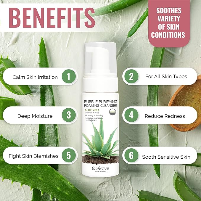 • BUBBLES OF CLEANSING FUN: KBeauty rules say, wash your face twice a day! So why not make it as fun as you can! Look At Me Aloe Vera Facial Cleanser is a foam face wash and acne cleanser that soothes skin, moisturizes and purifies without stripping oils. And the fun bubble foam is just the icing on the cake!