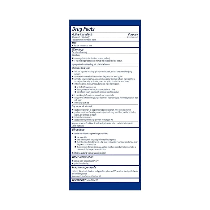 • CLEARS, TREATS & PREVENTS: Differin works differently than other Acne treatments by normalizing skin cell turnover and effectively targets two primary causes of Acne, clogged pores and inflammation