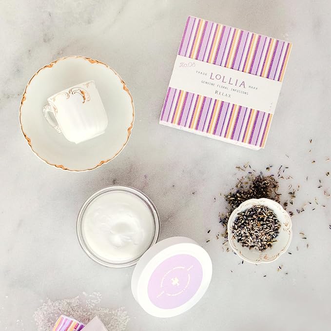 • LAVENDAR & HONEY BODY MOISTURIZER: Lollia Relax Body Butter is ultra-nourishing and richly comforting. Delicate infusions of Lavender, Bee Blossom Honey, White Orchids, and Amber leave skin delightfully scented.