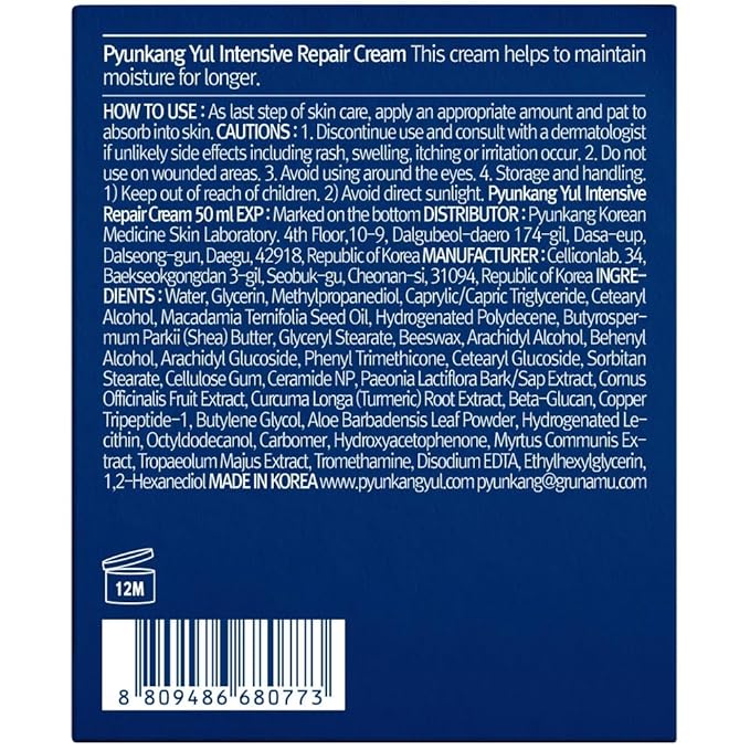 Pyunkang Yul PKY Intensive Repair Cream - Ceramide Moisturizer for Dry Skin with Shea Butter & Macadamia Oil, 1.7 Fl. Oz