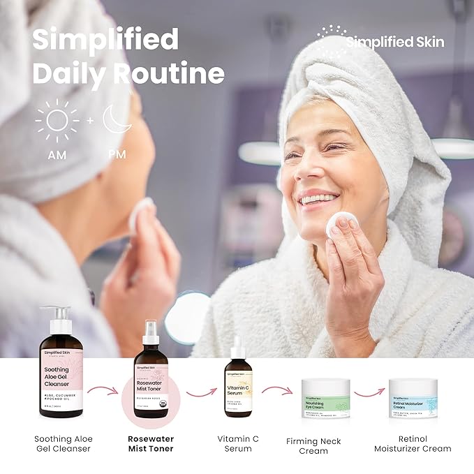• USDA-Certified Organic Rose Water Spray for Face: Simplified Skin's hydrating rosewater spray can be used across your beauty routine, offering soothing hydration and refreshing benefits for the face, body, and hair with every spritz.