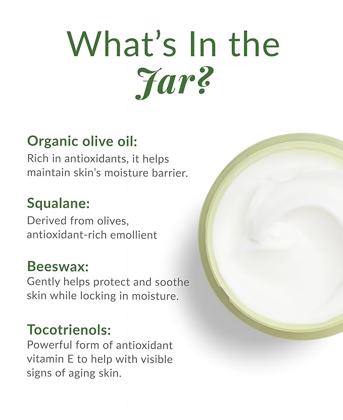 • This nourishing moisturizer features natural botanical ingredients like rice bran oil, squalane and beeswax to provide antioxidant protection and promote skin elasticity. An infusion of our signature 100% organic olive oil sourced in Spain and ultra-purified in Japan produces the ultimate in hydration for soft, radiant skin.
