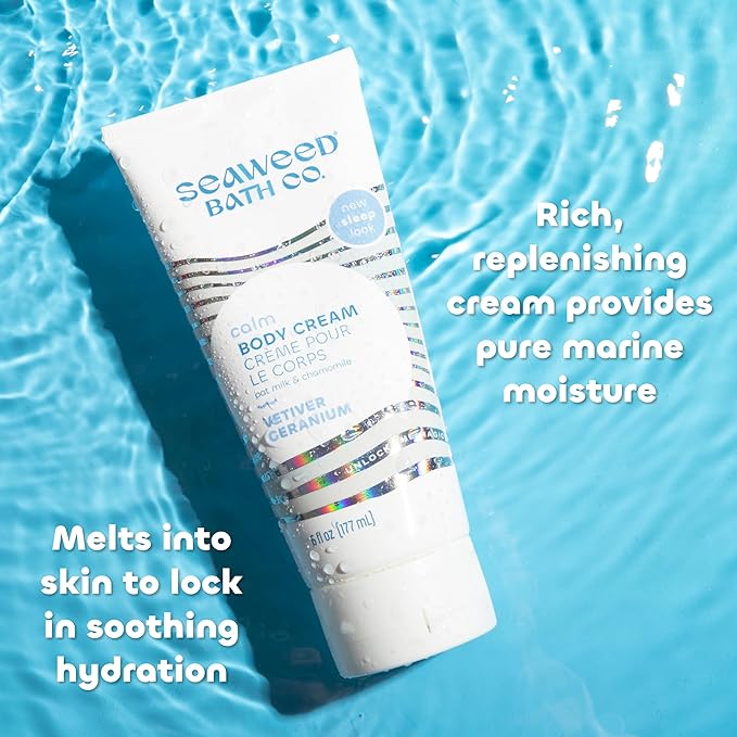 Seaweed Bath Co. Calm Body Cream, Vetiver Geranium Scent, 6 Ounce, Sustainably Harvested Seaweed, Oat Milk, Chamomile