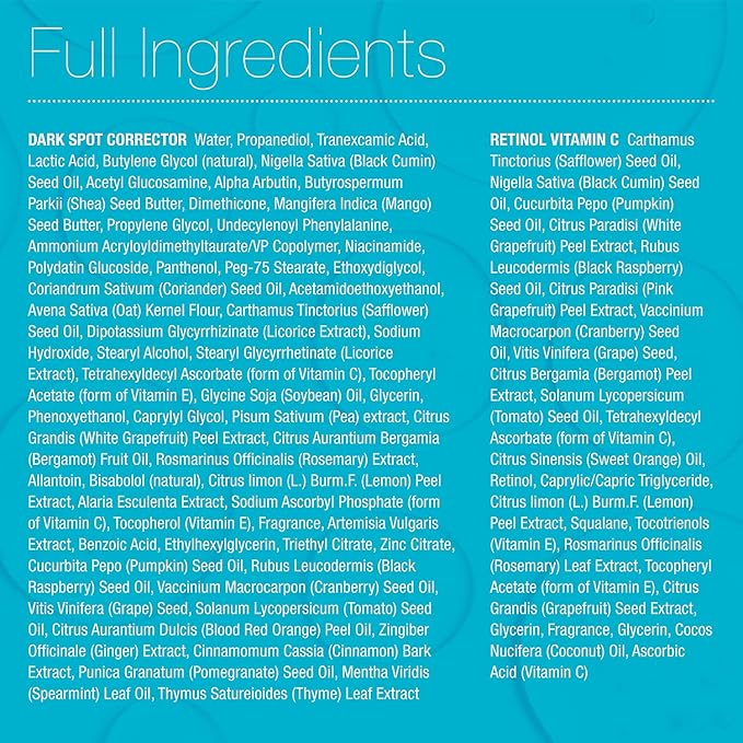 • HIGH LEVELS of CLINICALLY PROVEN INGREDIENTS: Tranexamic Acid, Licorice Extract, Alpha Arbutin, Retinol, Vitamin C, Vitamin E, Lactic Acid, Resveratrol precursor, Citrus Extracts and Herbal Extracts.