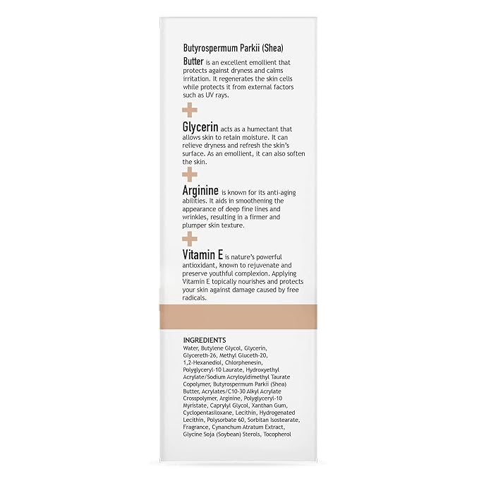 • [VEGAN 96% NATURAL BLEND OF SHEA BUTTER] This 96% natural shea butter serum also includes other hero ingredients such as Vitamin E which is known to rejuvenate and repair the skin’s cells to promote youthful complexion, and Arginine which aids in smoothening fine lines, resulting in plumper skin texture.