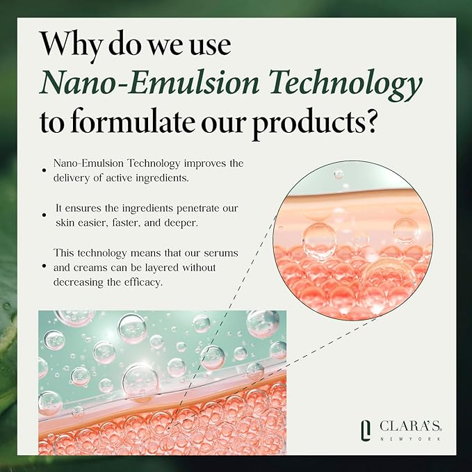 • [FOR CONSCIOUS CONSUMERS] Clara’s New York is a clean beauty brand. This product contains NO synthetic colors, parabens, sulfates, phthalates, etc. Formulated using nano-emulsion technology, the formulation is non-comedogenic, non-irritating, and penetrates the skin deeper and faster. If you are a clean beauty lover, this product is made for you.