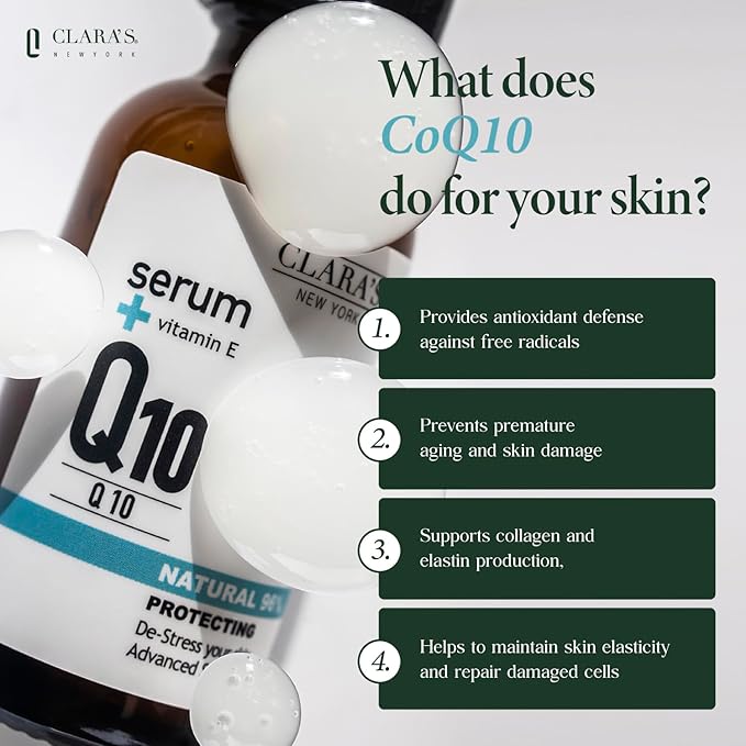 Clara’s New York Q10 Antioxidant Facial Serum with Hydrolyzed Collagen, Ceramide NP & Vitamin E – Anti-Aging, Hydrating, Skin Barrier Repair – 30ml / 1 Fl Oz – Made in USA
