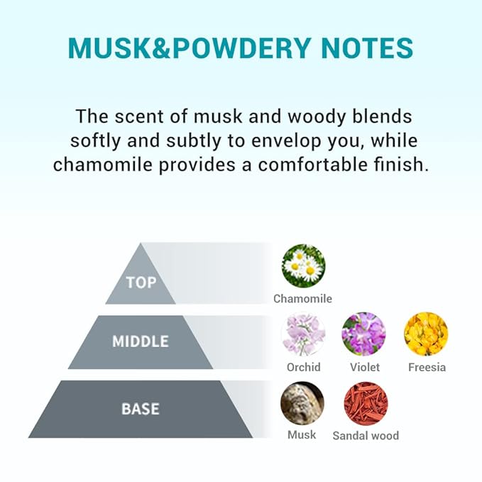 • GENTLE WOODY SCENT: Delivers a warm, comforting finish with musk and sandalwood base notes, orchid, violet, and freesia middle notes, and a soothing chamomile top note for a relaxing aroma.