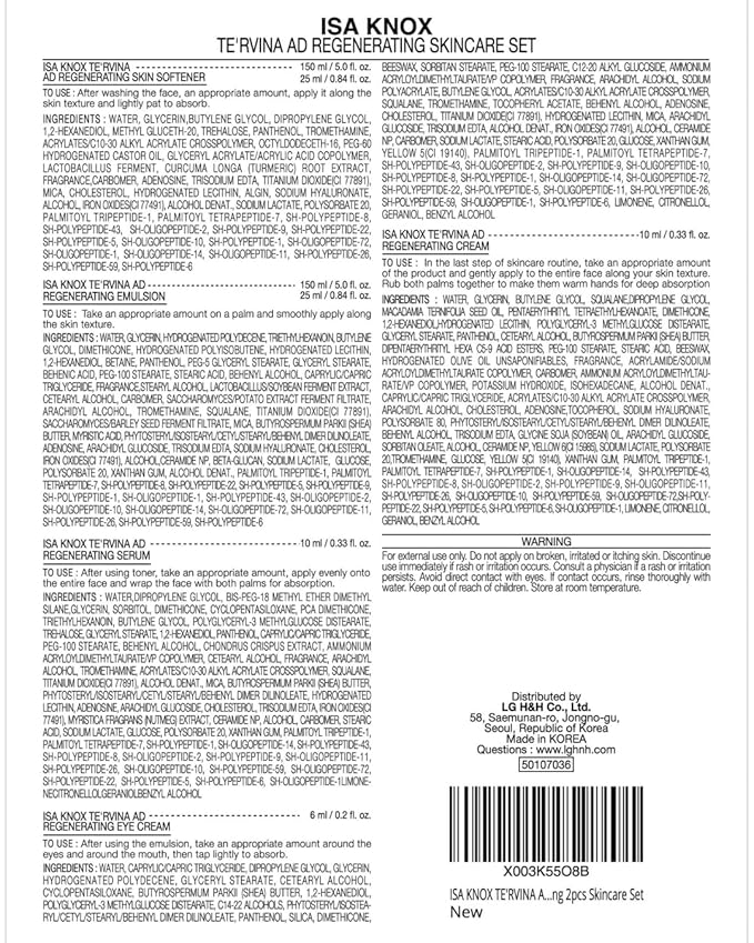 • ISA KNOX TE'RVINA AD REGENERATING SKINCARE SET - TE'RVINA AD Regenerating Skin Softener (5.1+0.9fl oz), TE'RVINA AD Regenerating Emulsion (5.1+0.9fl oz), TE'RVINA AD Regenerating Serum (0.3fl oz), TE'RVINA AD Regenerating Eye Cream (0.2fl oz) & TE'RVINA AD Regenerating Cream (0.3fl oz)