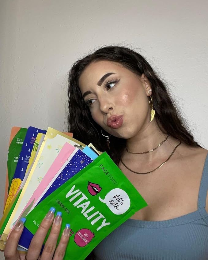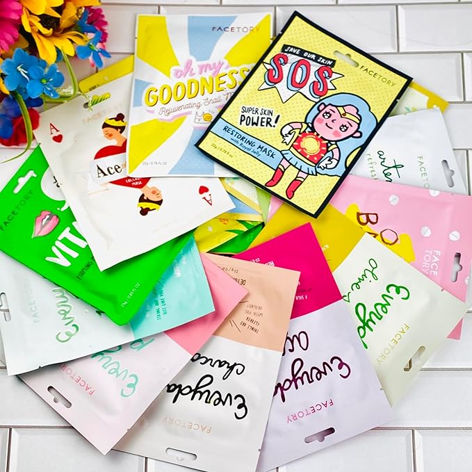 FACETORY Collection Facial Mask Set - Hydrating, Purifying, Soothing, Moisturizing, and Revitalizing - Soft, Form-Fitting Face Masks, For All Skin Types - No Sulfates No Parabens (15 pc)