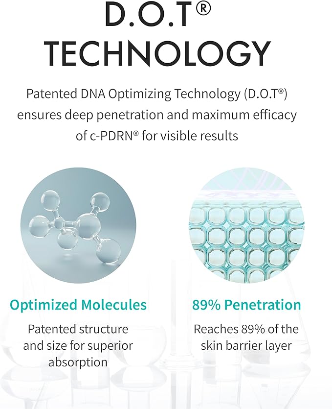• ADVANCED C-PDRN TECHNOLOGY: Our patented c-PDRN works synergistically with salmon DNA to boost collagen production and support skin regeneration. This enhances firmness, reduces fine lines, and promotes a healthy, luminous glow.