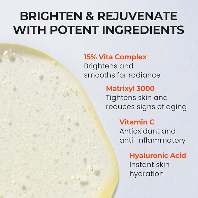 15% Vita Energy Complex: Formulated with a 15-vitamin blend, Hydrolyzed Collagen, and MATRIXYL 3000, these ingredients restore essential moisture to your skin and improve its firmness.