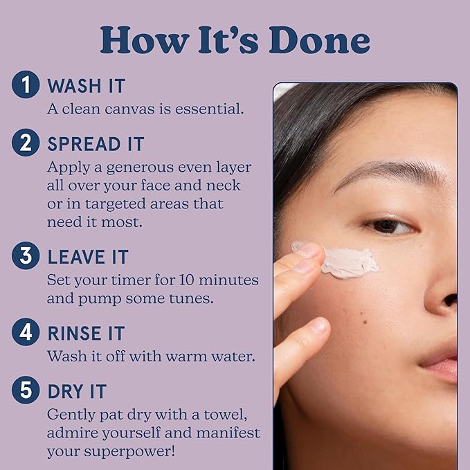• Made with 3 Incredible Clays - Montmorillonite clay, kaolin clay and bentonite clay join forces to get deep into your pores and work their natural powers fast. All 3 types of clay help to shrink pores, tone and firm skin, as well as absorb excess oil while preventing breakouts before they begin.