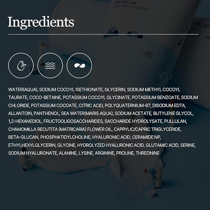 ROUND LAB 1025 Dokdo Cleanser 5.07 Fl Oz, Low pH Facial Cleanser for Sensitive Skin, Rich Soft Bubbles for Deep Cleansing and Makeup Removal, Hydrating Face Wash with Deep Sea Water, Korean Skin Care