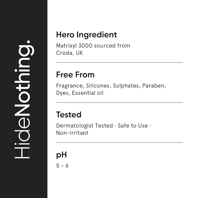 • [ CLEAN & TRANSPARENT BEAUTY ]: This serum is (i) Fragrance-free (ii) Silicones-free (iii) Sulfates-free (iv) Parabens-free (v) Essential Oils-free and (vi) Dyes-free. Also, it is non-comedogenic and hypoallergenic. Formulated at pH 5.0 - 6.0 formulated with premium quality of Matrixyl 3000 by Croda, UK and Bio-placenta by Labio, Korea, leading global suppliers of skincare ingredients.